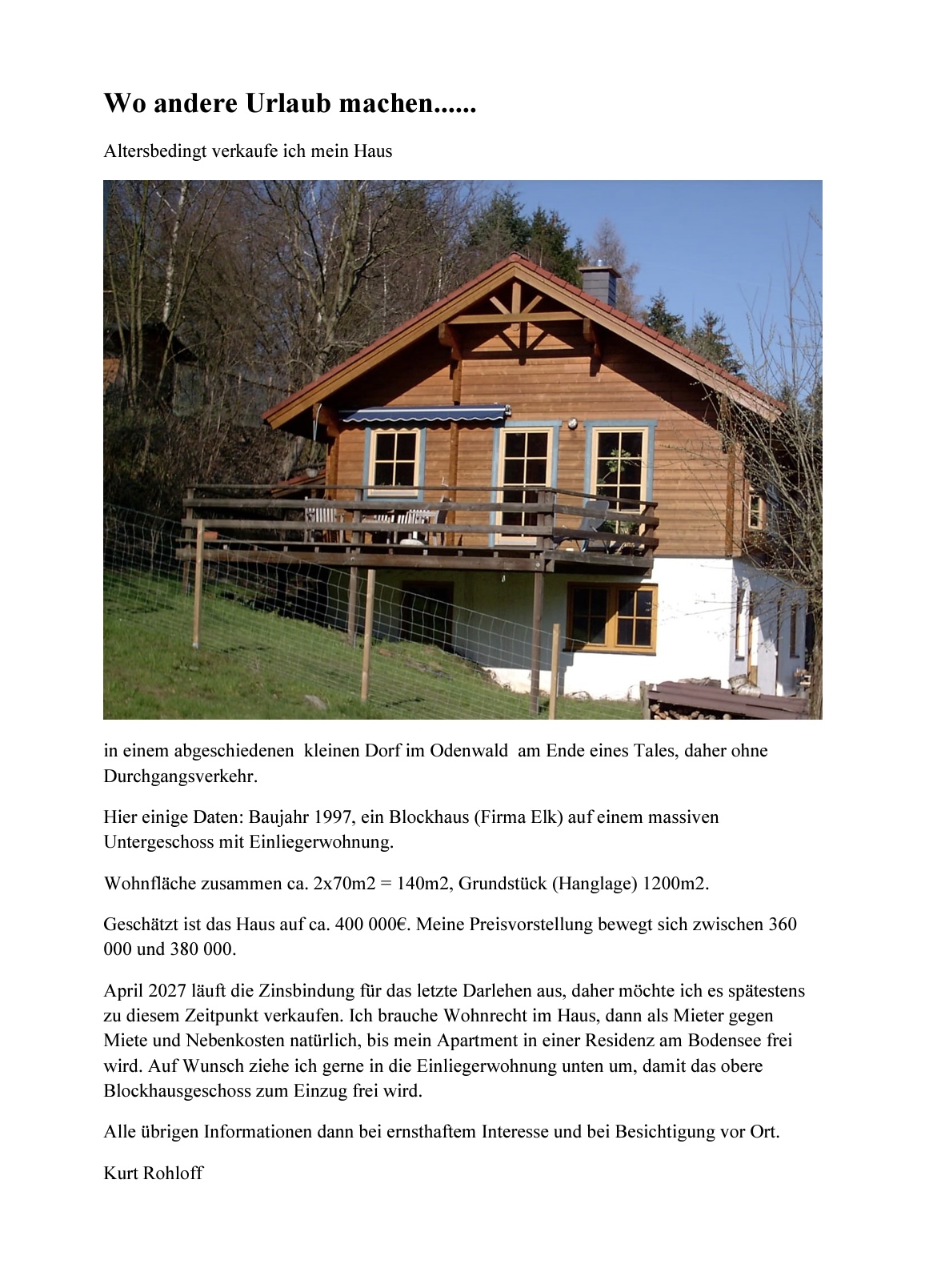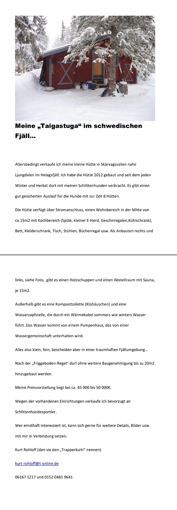 Unser Mitglied Kurt Rohloff bietet sein Haus im Odenwald und seine Stuga in Schweden zum Verkauf an. Bitte meldet euch bei Interesse direkt bei Kurt, Email: kurt-rohloff@t-online.de