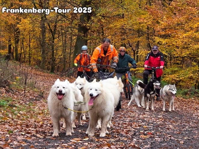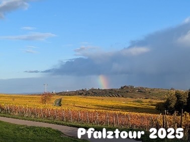 Da geht es tourenmäßig Schlag auf Schlag, gerade aus der fränkischen Schweiz zurück, ging es bei sehr stürmischem Wetter in die Pfalz. Die präsentierte sich so bunt und schön, wie es nur zu dieser Jahreszeit geht. Trotz stürmischer Winde wagten wir uns an zwei Tagen in den Wald und wurden mit einer tollen Strecke und phantastischen Aussichten belohnt. Klein, aber fein war die ganze Veranstaltung, auch das Lagerfeuer wurde auf Grund des Windes im Schutz der Grillhütte angezündet und von uns nach dem traditionellen „Saumagenessen“ genossen. Der rote Sand an Mensch, Tier und Equipment hatte kaum Zeit zu trocknen…….